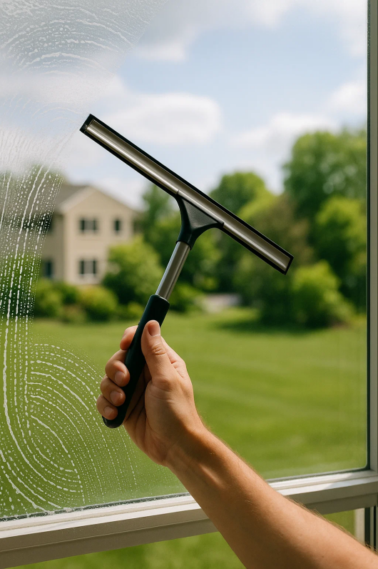 Tip: Use two microfiber cloths: one to wipe the squeegee blade and another to dry the edges of the window. This prevents re-depositing dirt onto the glass.