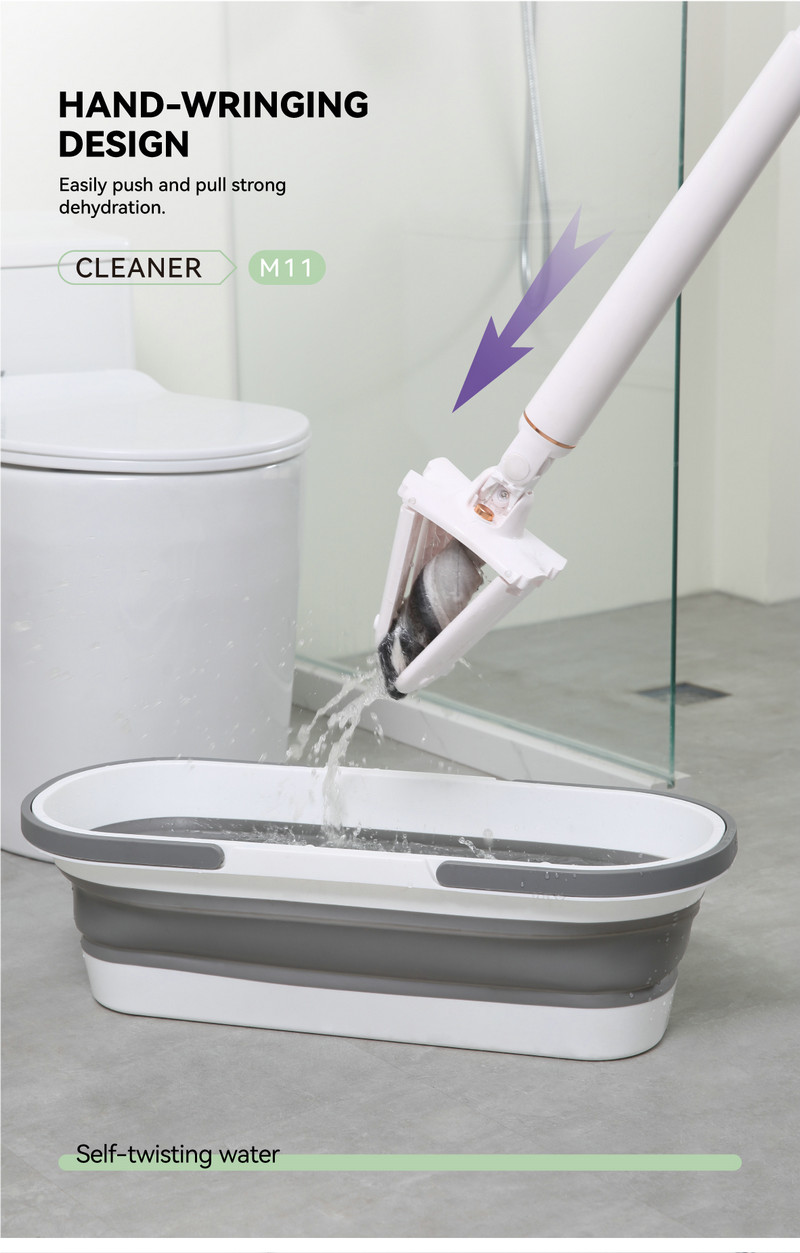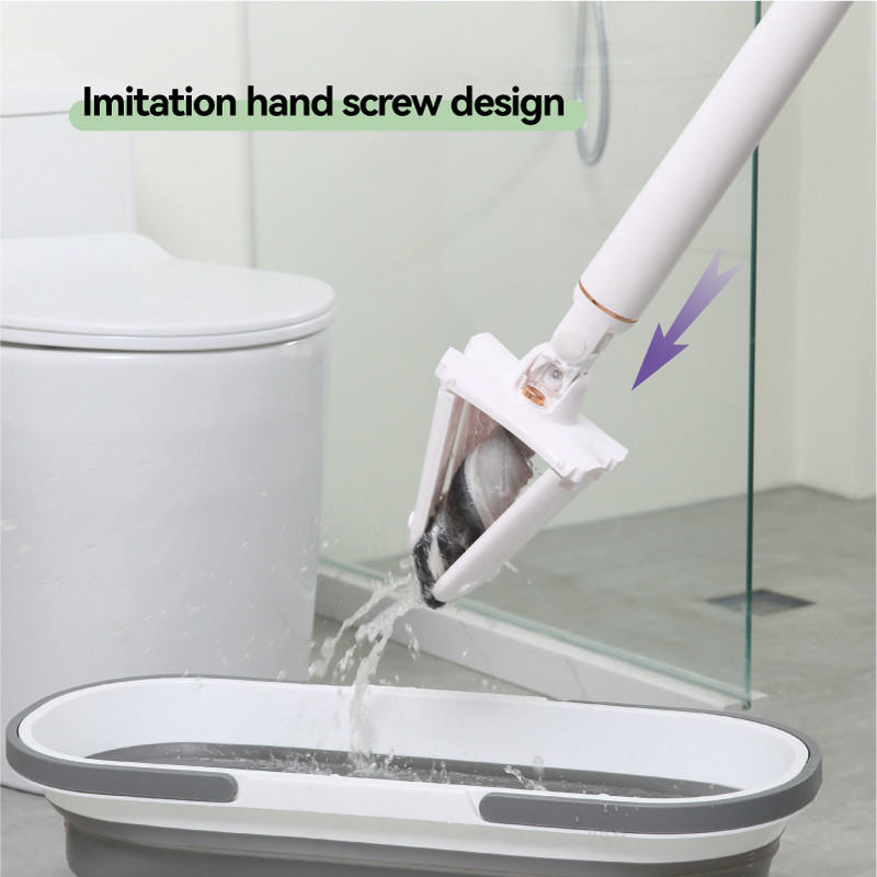 Hands-Free Wringing! This innovative mop simulates hand wringing perfectly. Simply pull the pole: its smart internal linkage spins the microfiber cloth head like human hands twisting a rag – squeezing out maximum water without ever touching dirty fabric. Clean floors, clean hands