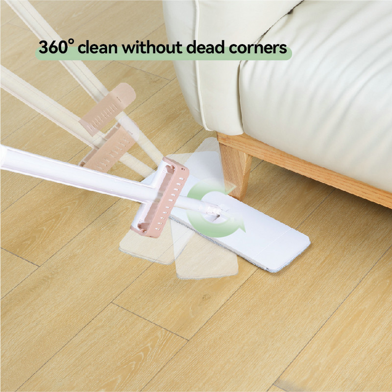 1.Wet and dry use: It uses an efficient microfiber mop, which can easily absorb dust and fine particles when mopping dry, and can be used with detergent for deep decontamination when mopping wet.