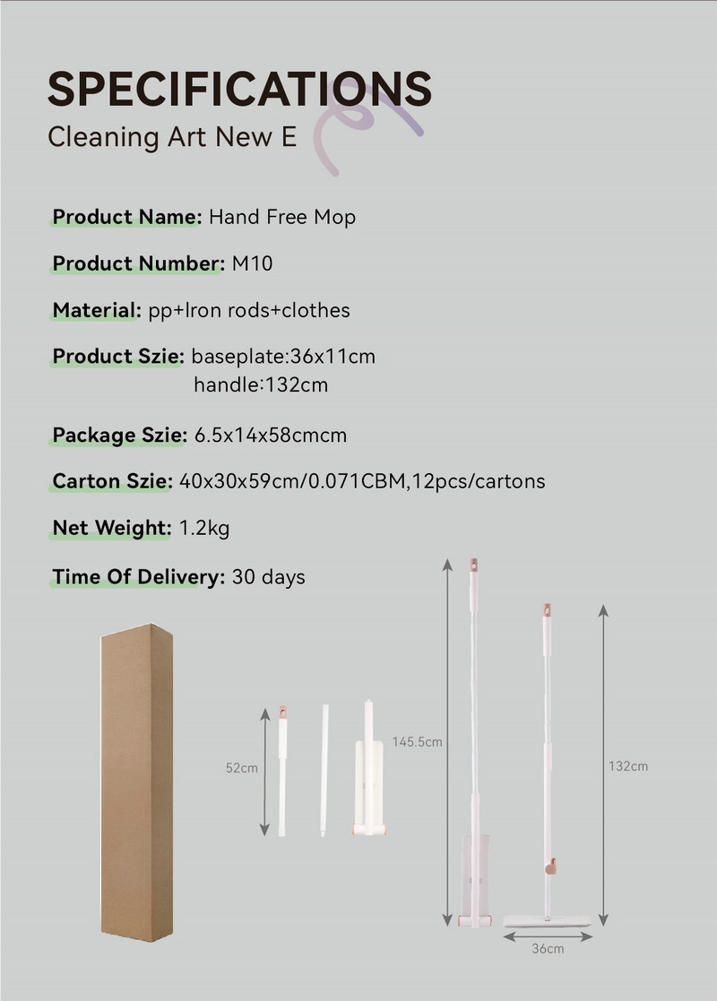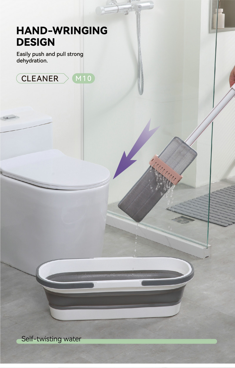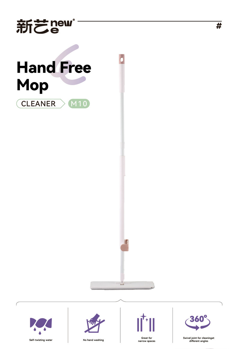 Hand Free Mop is a hands-free flat mop that can be used wet or dry to easily deal with dust and stubborn stains. It is equipped with an automatic water squeezing system, which can clean your hands without twisting them. It is equipped with a replaceable mop, which is suitable for cleaning floors, walls, windows and other surfaces, making housework easier and more efficient.