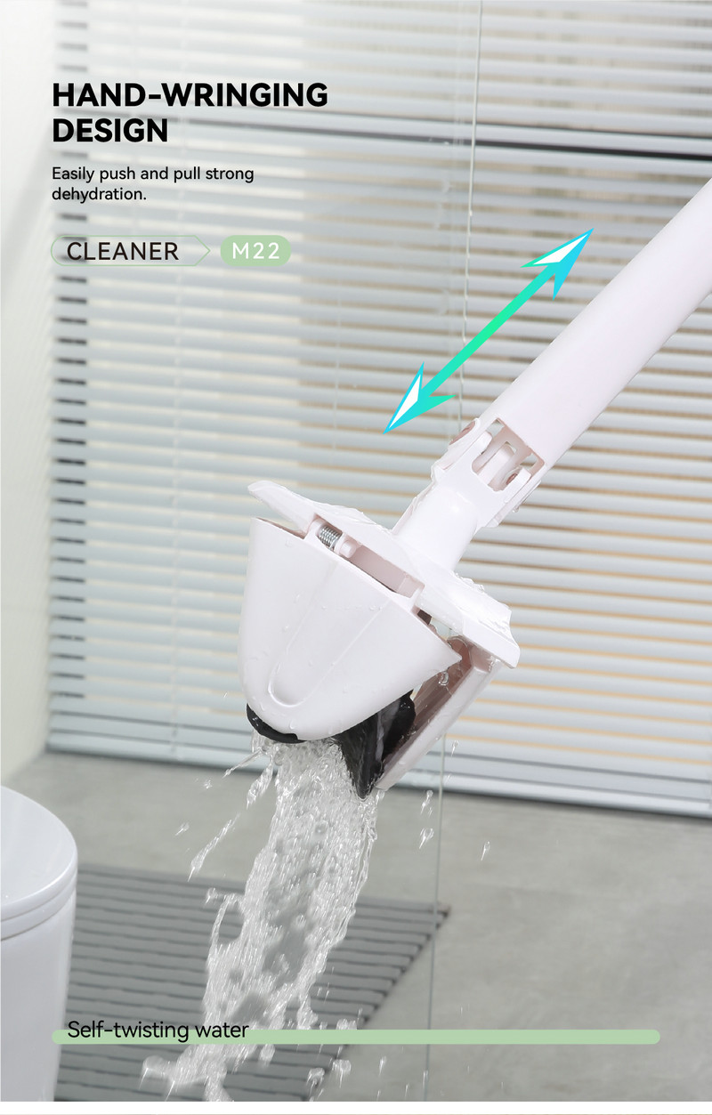 Hands-Free Wringing! This innovative mop simulates hand wringing perfectly. Simply pull the pole: its smart internal linkage spins the microfiber cloth head like human hands twisting a rag – squeezing out maximum water without ever touching dirty fabric. Clean floors, clean hands