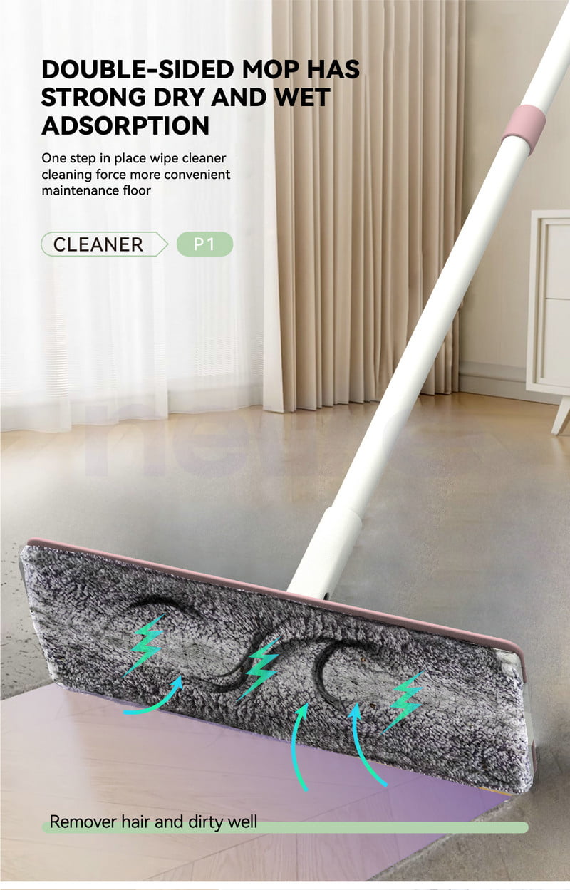 Versatile fabric: The clip of this flat mop can use old towels, cleaning cloths or non-woven fabrics, which is perfect for environmentally friendly mop cleaning.