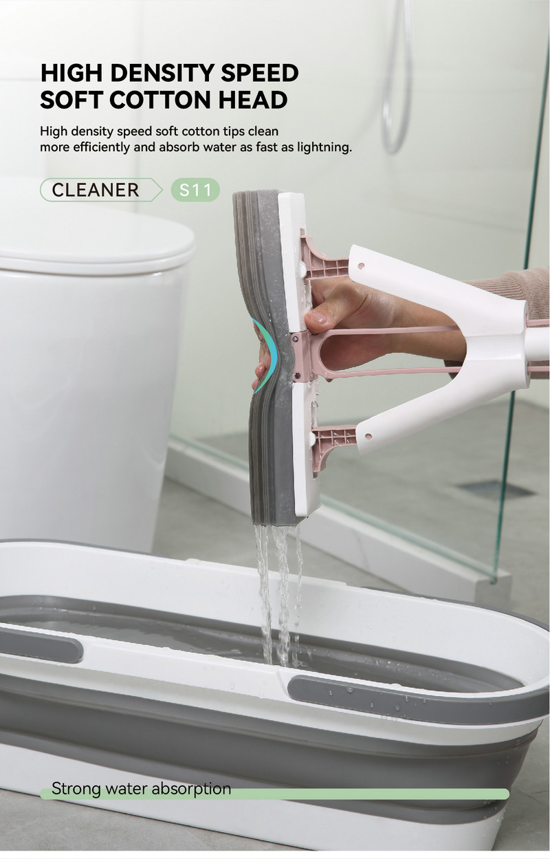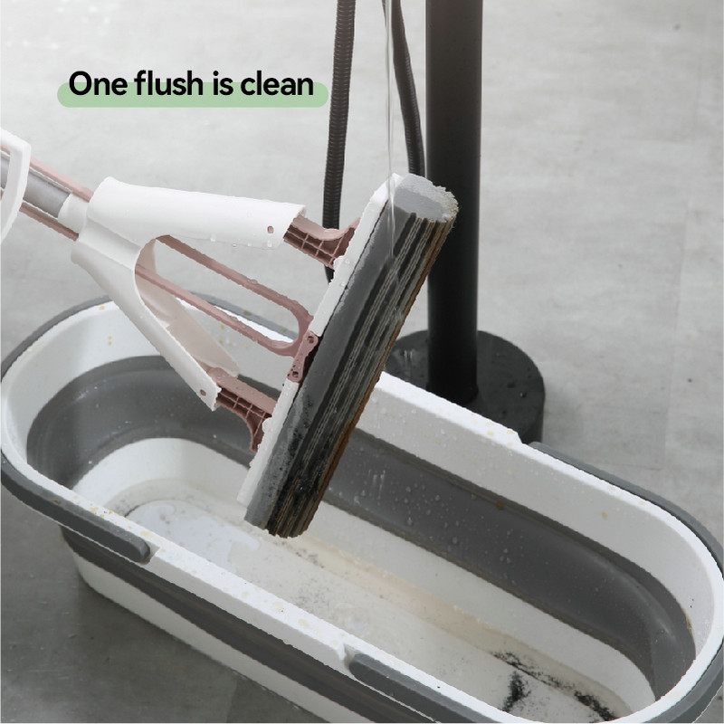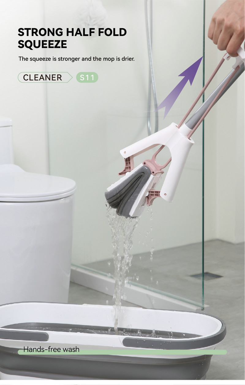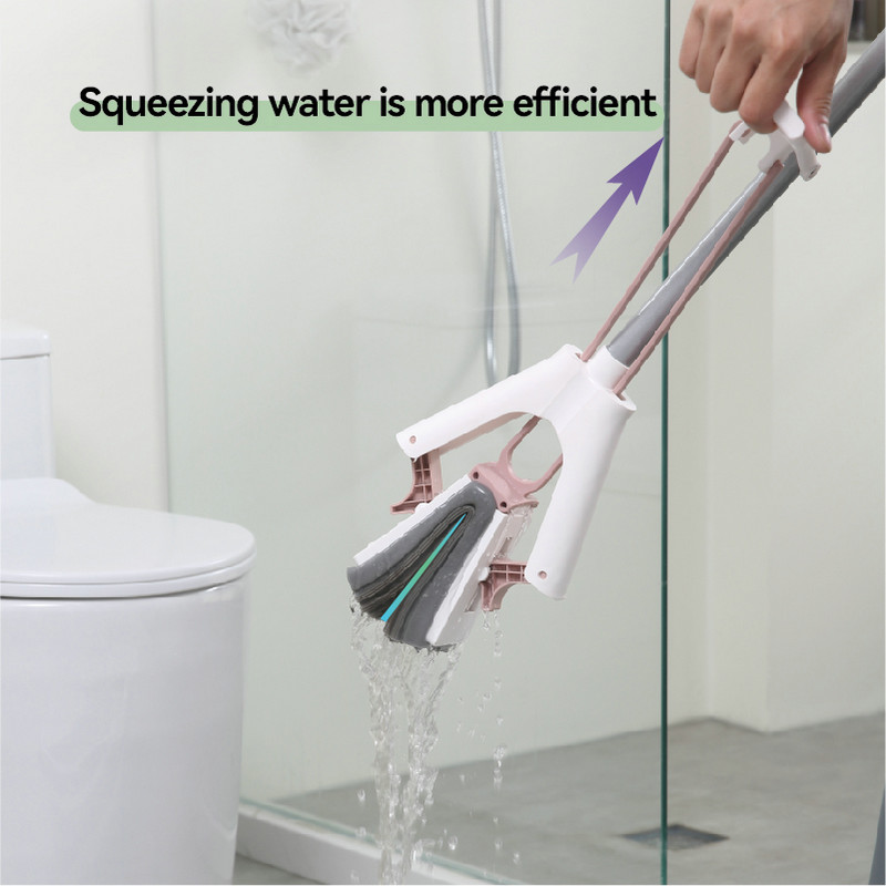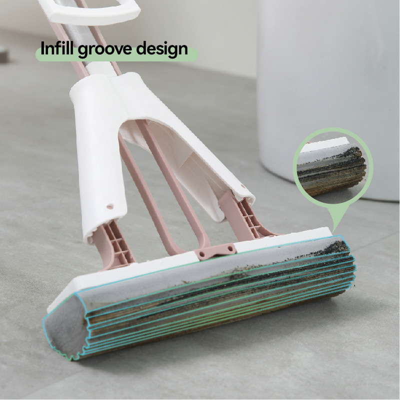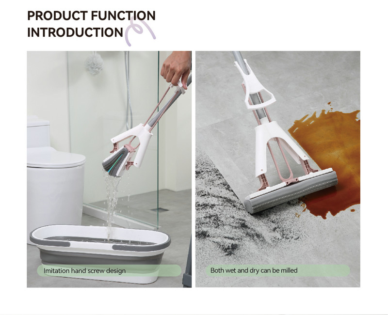 Unique Folding Wringing Mechanism: Unlike standard sponge mops, this design utilizes a highly effective folding squeeze action. Simply press the sponge head completely in half to expel dirty water thoroughly. This unique motion ensures maximum water removal and superior drying for a faster clean.