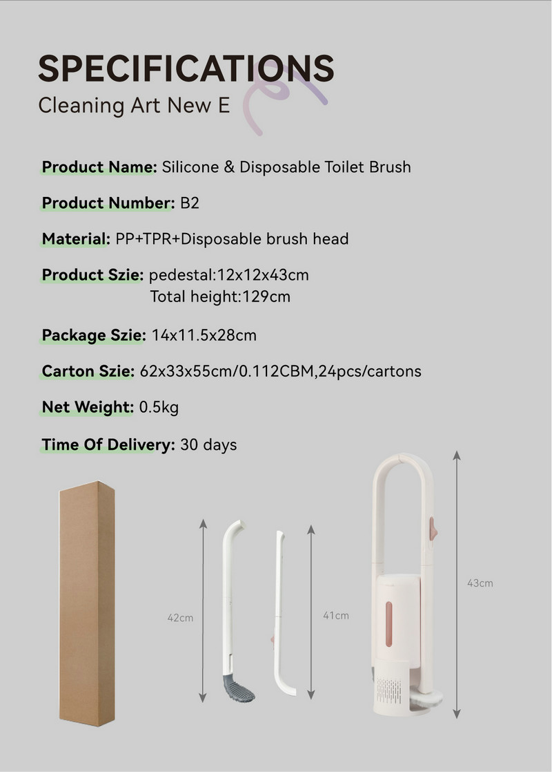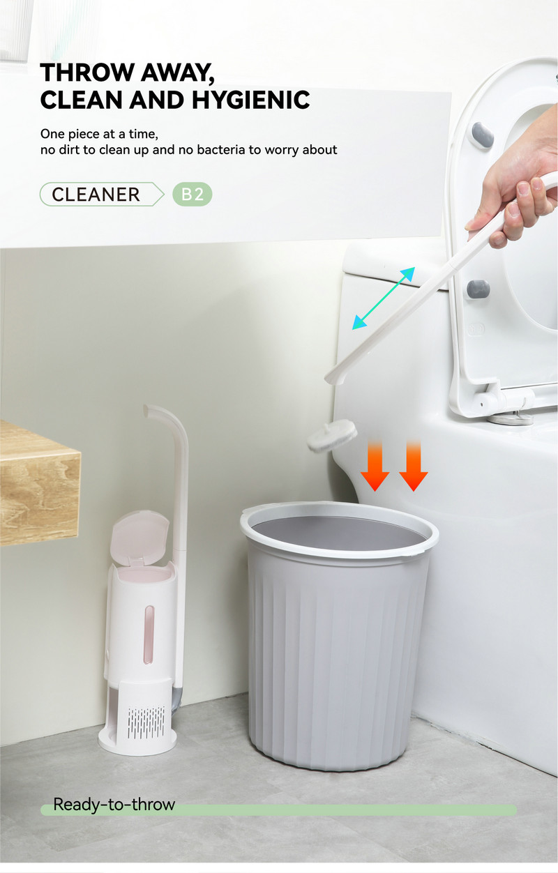 This innovative Disposable Toilet Brush Head is designed for ultimate hygiene and convenience. Each brush head is infused with deodorizing fragrances and powerful antibacterial agents, scientifically proven to eliminate 99.9% of bacteria