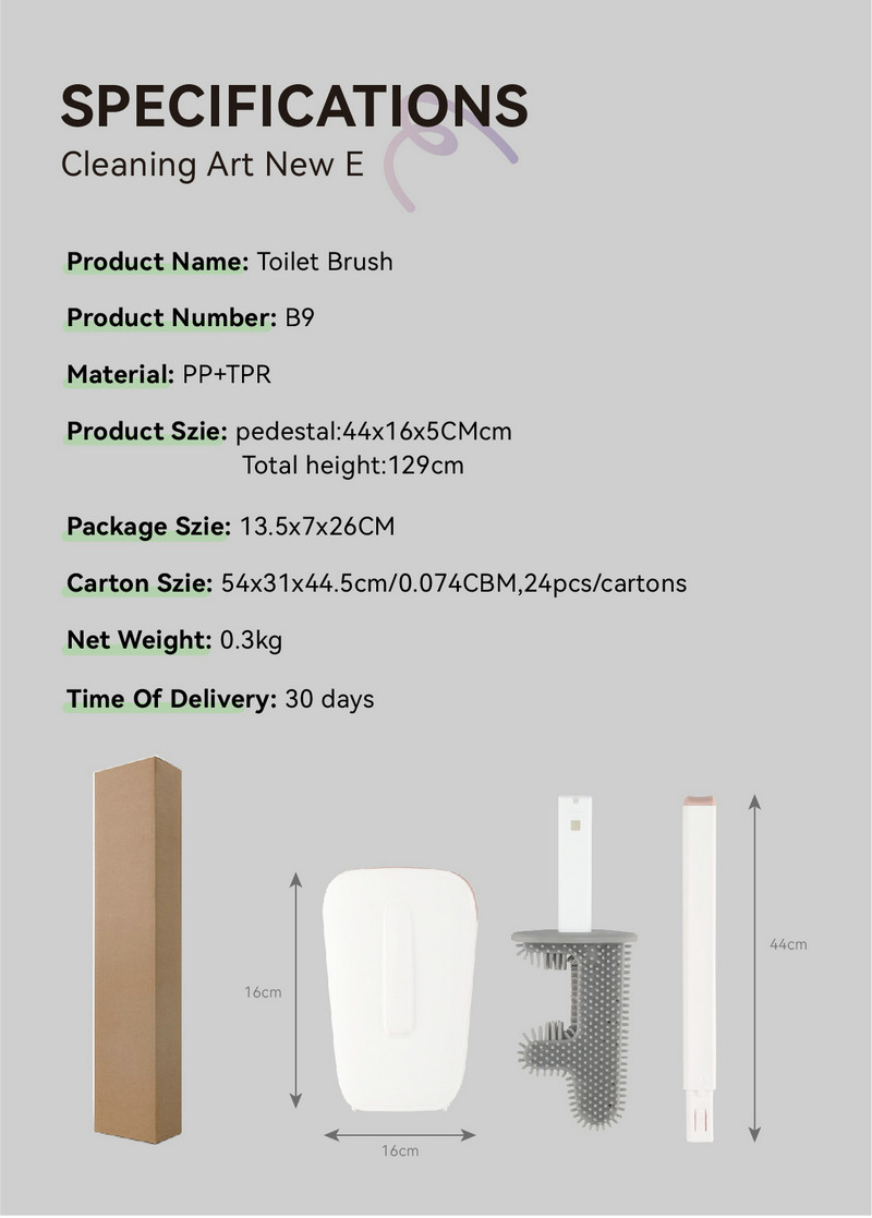 This innovative toilet brush features a TPR (Thermoplastic Rubber) brush head, engineered to address the limitations of traditional bristle brushes. Its advanced material and design deliver superior performance in hygiene, convenience, and durability, transforming routine cleaning into a hassle-free experience.
